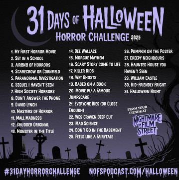 It's Day 276 of the year and the main project. That means we are on Day 3 of the Hallowe'en and Horror movie challenges. If you want to follow along on my lists on Letterboxd, my 31 Days of Hallowe'en challenge is here and the 31 Day Horror Challenge hosted by Nightmare on Film Street is here.